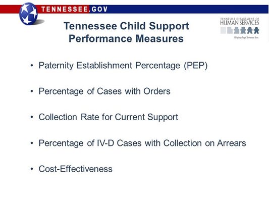 The Child Support Program works with both the custodial parent and non-custodial parent to see that the financial needs of the child ren are met. Tennessee Department of Human Services. The detailed Notice and Debit card fees can be accessed here.