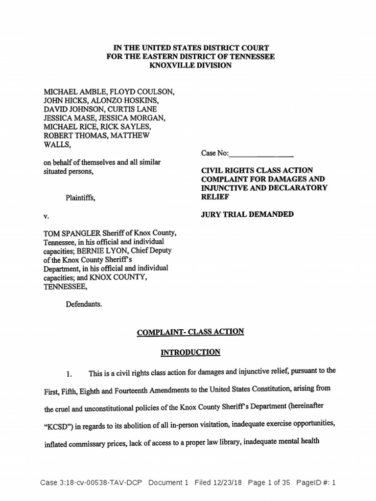 Lawsuit Filed By 12 Inmates Against Knox County Sheriff Chief Deputy Government Now Dismissed Wbir Com