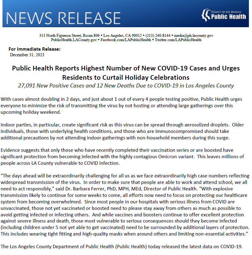 La Public Health On Twitter Public Health Reports Highest Number Of New Covid 19 Cases And Urges Residents To Curtail Holiday Celebrations For More Information Visit Https T Co L3rvnifhhx Https T Co Opblu1d3n9 Twitter